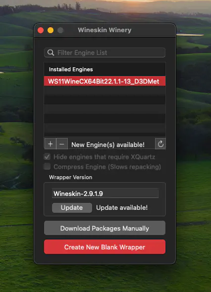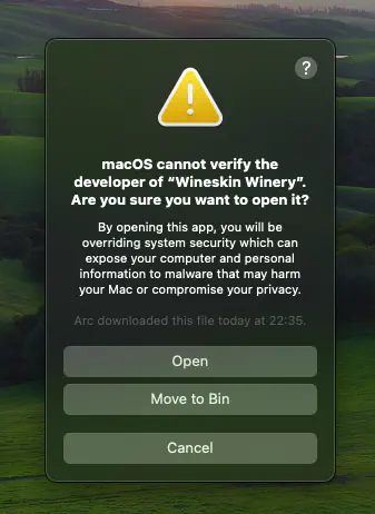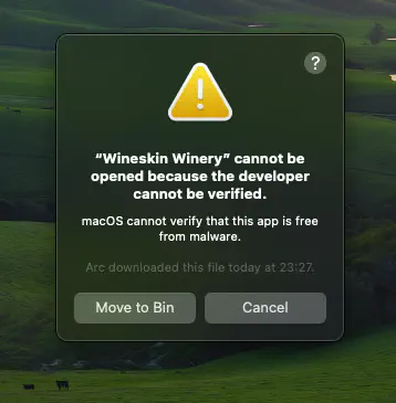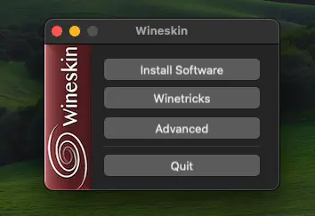 First start by launching Wineskin Winery. If you click directly on the launcher, you will get the following error: