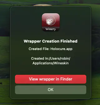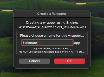 What we will do is to use a software called Wine. It is a software that let you run windows software on macos, including the Holocure launcher! It runs very well and it is very easy to use.